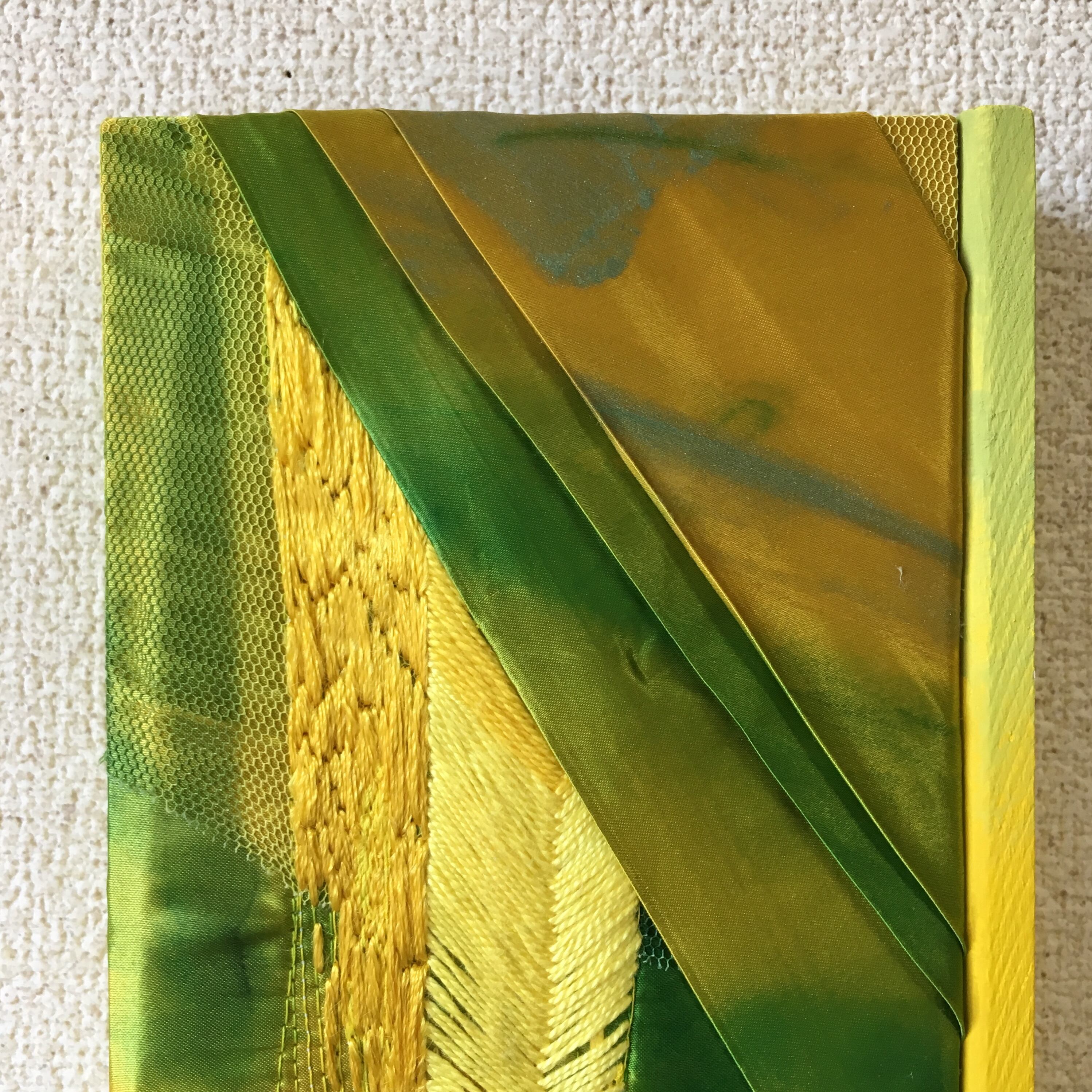 技法:木製パネルに布 アクリル絵具, 刺繍 ,木材