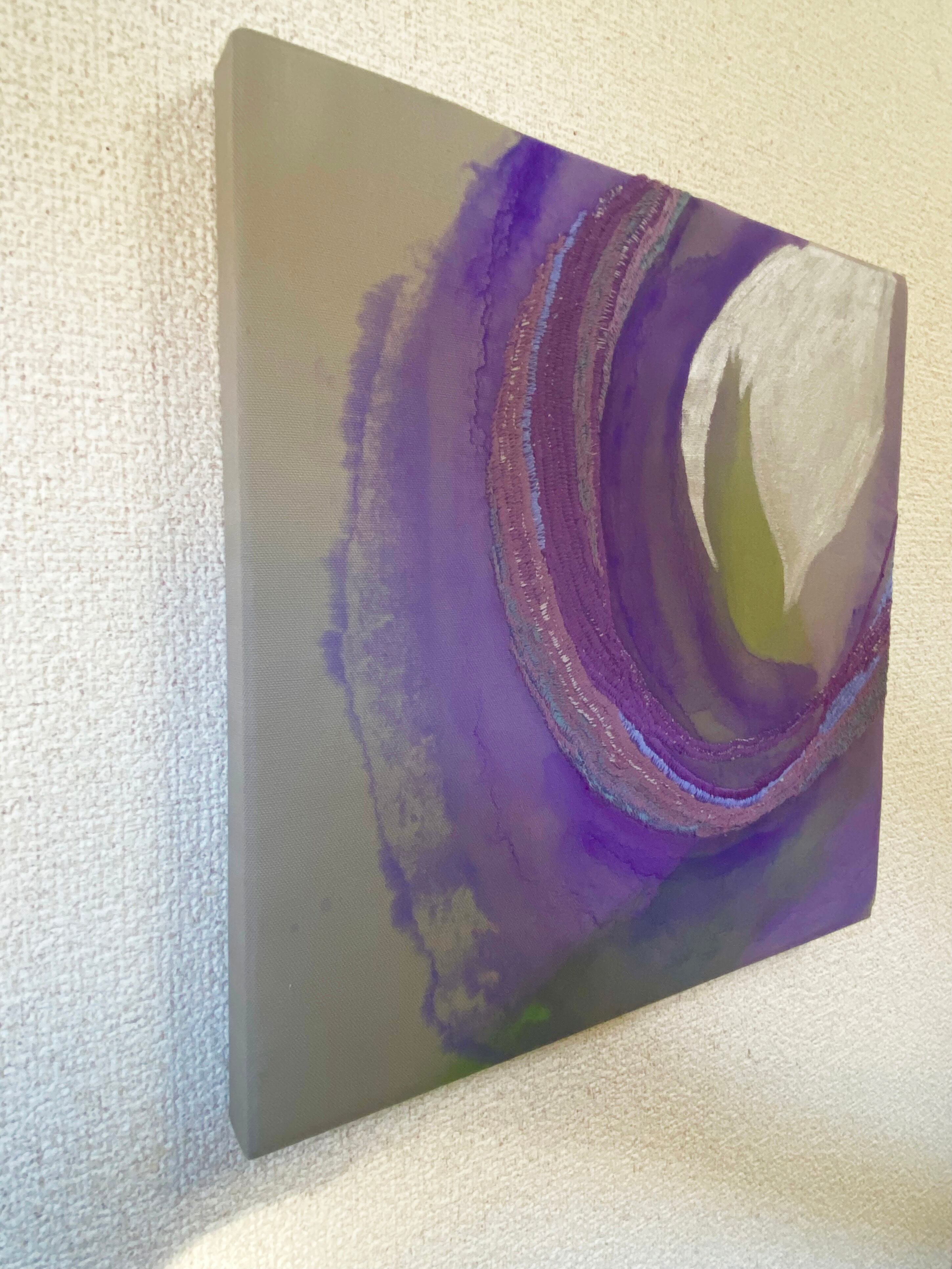 技法: 木製パネルに布張り, アクリル絵の具, ジェッソ, 刺繍
