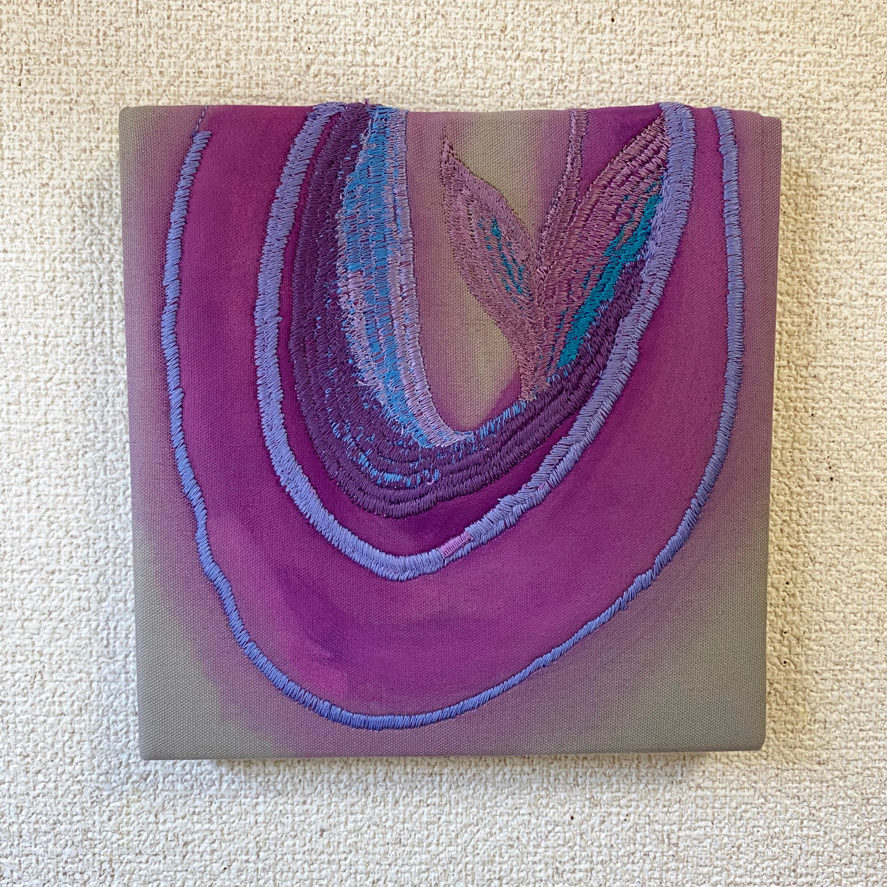 技法: 木製パネルに布張り, アクリル絵の具, ジェッソ, 刺繍