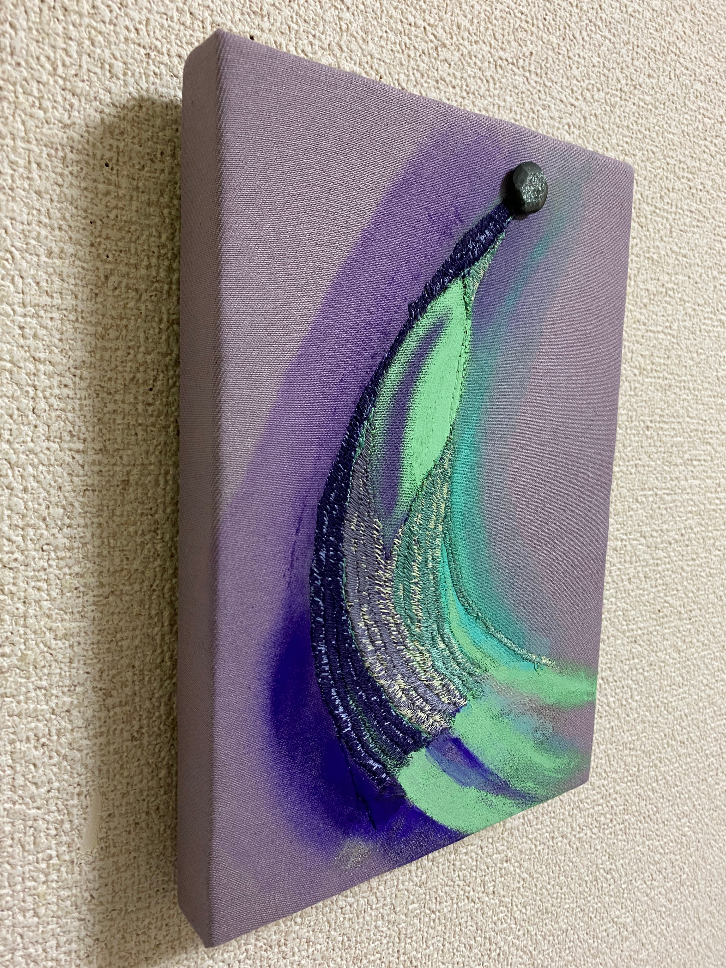 両手に馴染みやすい、小ぶりな絵画作品です。
