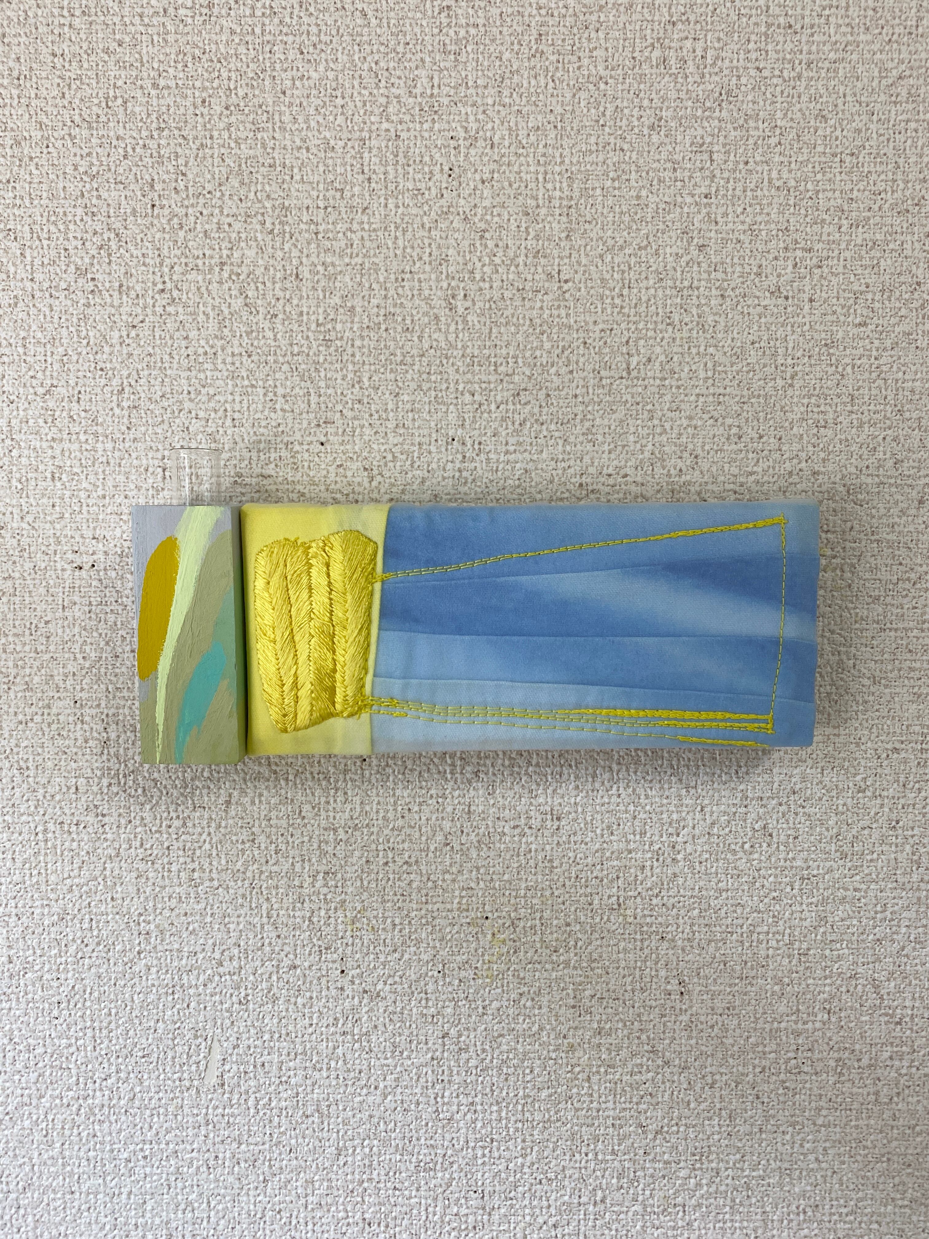 Medium : 木製パネル, 布, 手刺繍 ,アクリル絵の具,ジェッソ,ガラス試験管