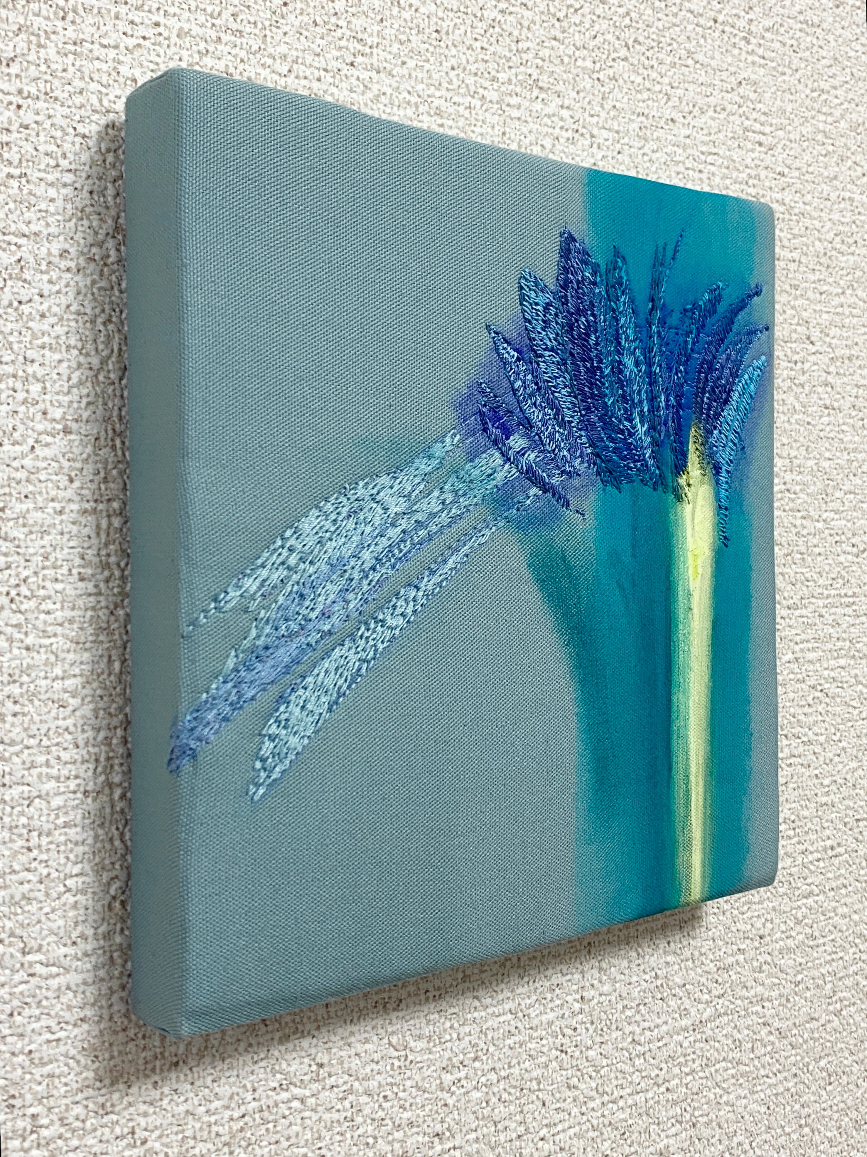 技法: 木製パネルに布張り, アクリル絵具, 刺繍