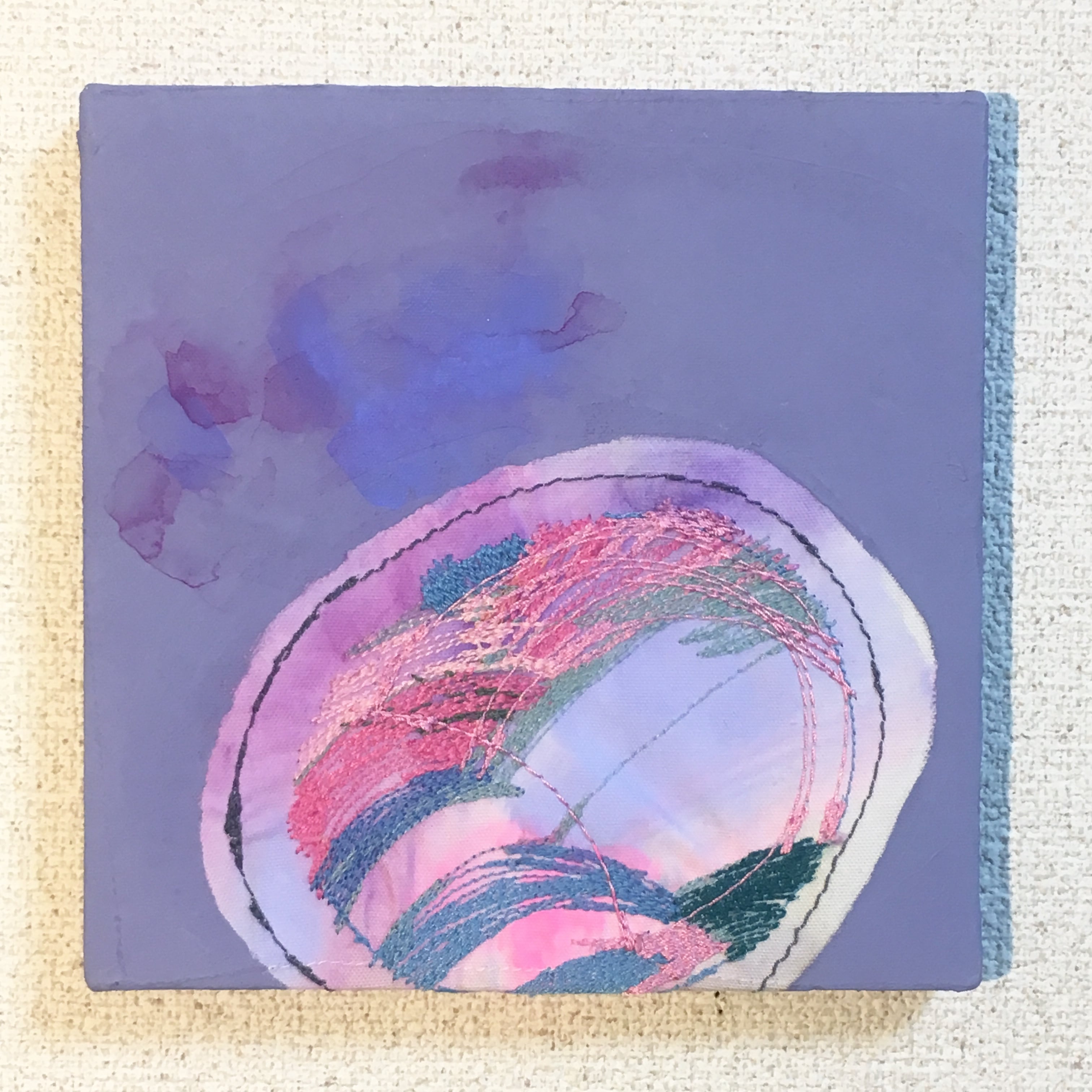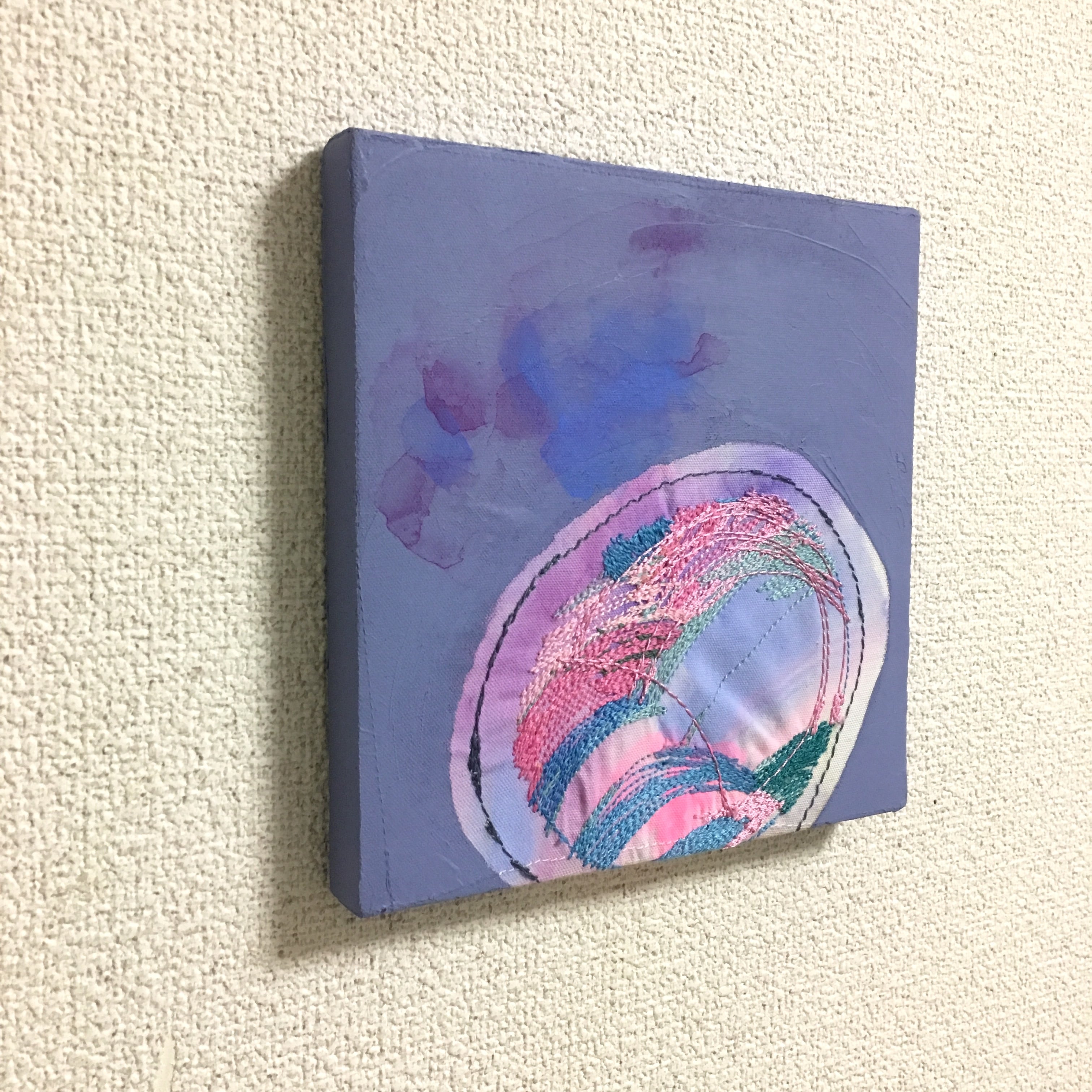 技法: 木枠に布張り, ミクストメディア( アクリル絵具 ジェッソでドローイング,刺繍 )